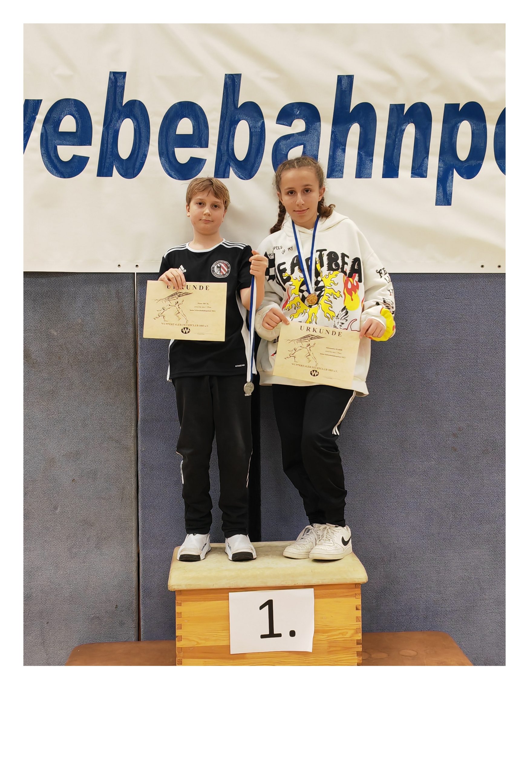 Alessandra und János haben gefochten, gefochten, gefochten. Es war einfach schön anzusehen. Beide gingen mit sehr guten Ergebnissen aus der 1. Runde. Im Gesamtklassement der ersten Vorrunde lag Alessandra auf Platz 14, János auf Platz 3. Die Runden waren so terminiert, dass exakt um 12 Uhr eine Stunde Mittagspause stattfinden konnte. Danach ging es in die 2.Vorrunde. Alessandra schob sich in dieser Runde auf Platz 11. János hielt weiterhin Platz 3 – bis zu diesem Zeitpunkt hatte er alle Gefechte gewonnen.